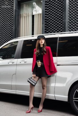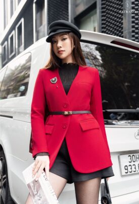 Blazer được may từ chất liệu Gabardine cao cấp, đanh mịn và đứng form. Kết hợp cùng áo tơ nhún co giãn 4 chiều và quần short vải Tex.