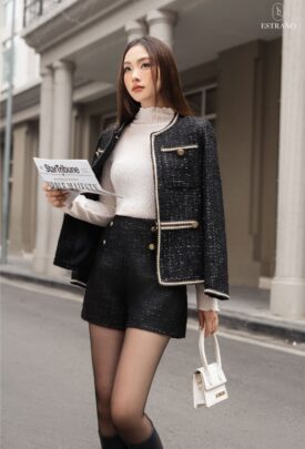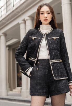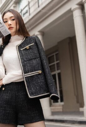 – Chất liệu: dạ tweed Ý cao cấp, đứng phom bên trong được lót thêm 1 lớp lụa ngọc mềm mịn mặc thoải mái và thấm hút tốt lành tính cho da