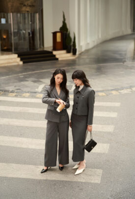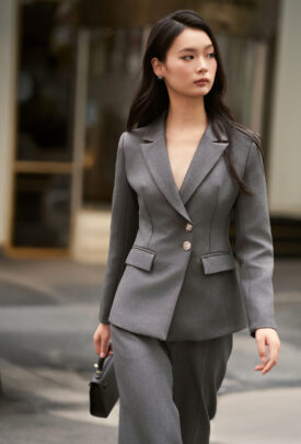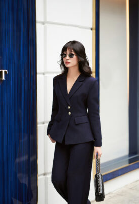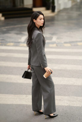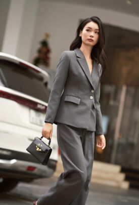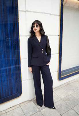Mẫu được may từ vải Chéo Nhật- vải chuyên dụng may vest với bề mặt vải đanh mịn, form áo vừa vặn cân đối nên rất đứng và tôn dáng.