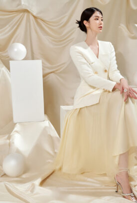 Sản phẩm mình quan tâm là set Kaylie nằm trong BST mới Délicate bao gồm Áo vest và chân váy giá: – áo: 1.050.000đ – váy: 550.000đ